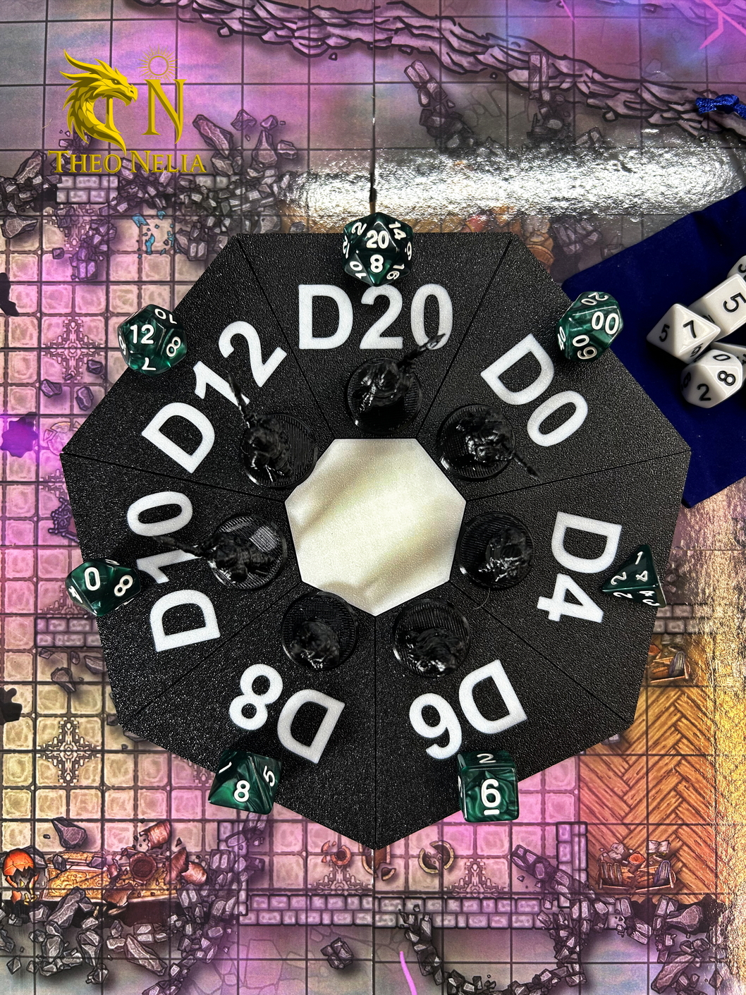 «Артефакт мастер» — лучший вспомогательный предмет для ведения игр НРИ, он позволяет удобно транспортировать большое количество игральных костей. Качественная сборка, магниты с высокой силой притяжения и деление на 8 секций — все предусмотрено! Крышки держатся плотно, это предотвращает возможное рассыпание кубиков в сумке. Шкатулка разделена на 7 секций для дайсов: D4, D6, D8, D10, D0, D12, D20, в центре есть место под мешочек или прочие вспомогательные приспособления. Изделие выполнено из качественного PLA пластика, шикарно смотрится!
